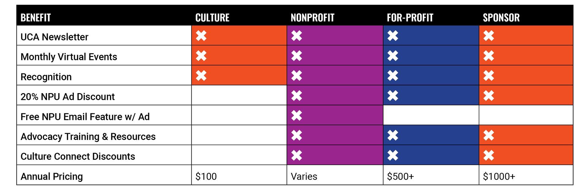 1. Combine all membership types into two main tiers: Culture Club and Organizational.